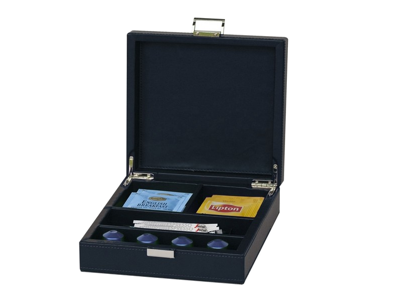 5 compartments for coffee capsule, teabags and sugar.