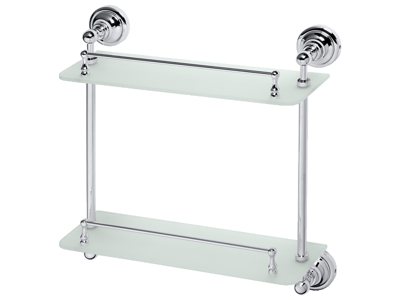 Glass shelf holder 400 mm with rail + wall brackets, chrome brass.