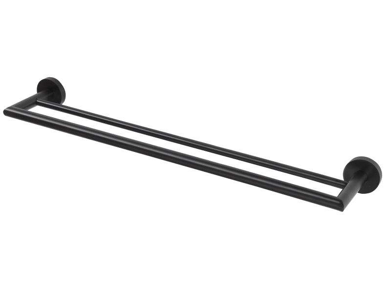 Double towel holder 600 mm (c to c), black epoxy coated brass. Tube Ø 18 mm.
