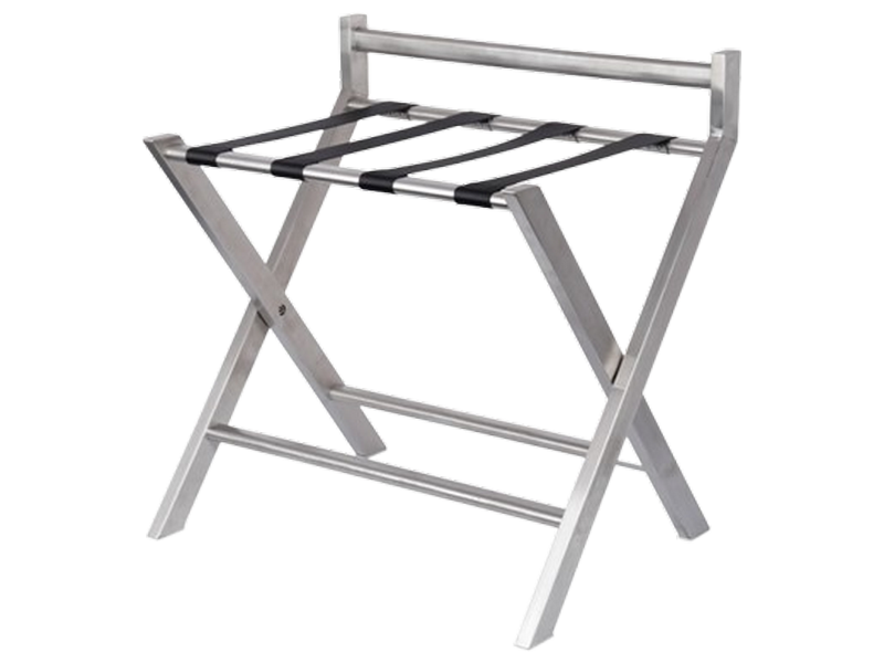 Foldable luggage rack with back square section tube by Rooms & Suites®, chrome finish.