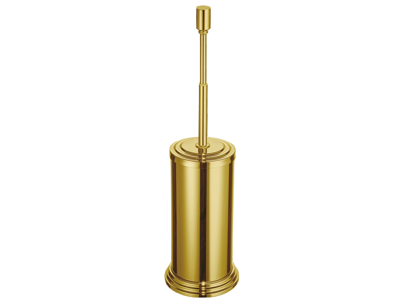 Free standing toilet brush holder, gold brass.