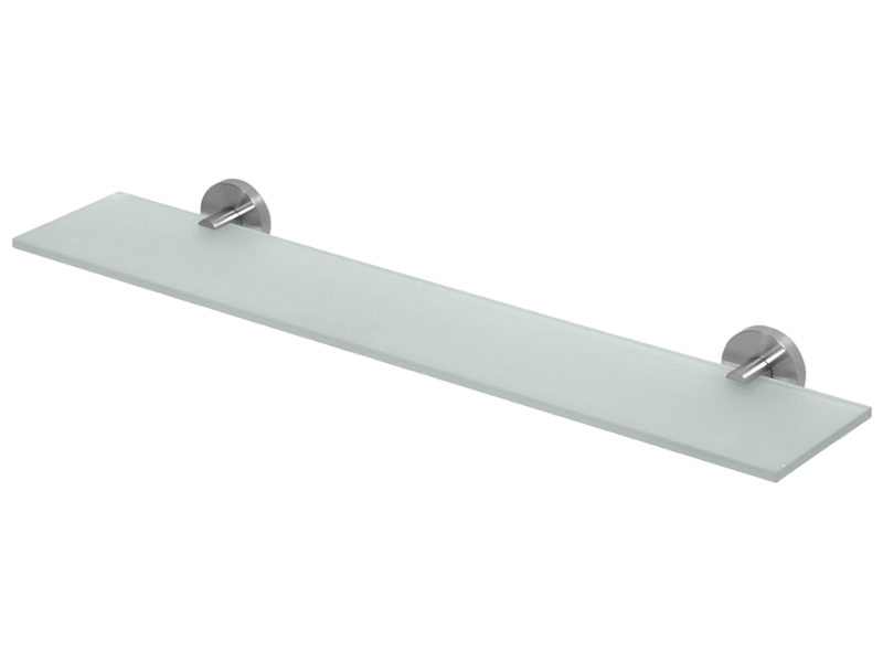 Glass shelf holder 600 mm, brushed stainless steel wall brackets. Safety frosted glass shelf 8 mm.