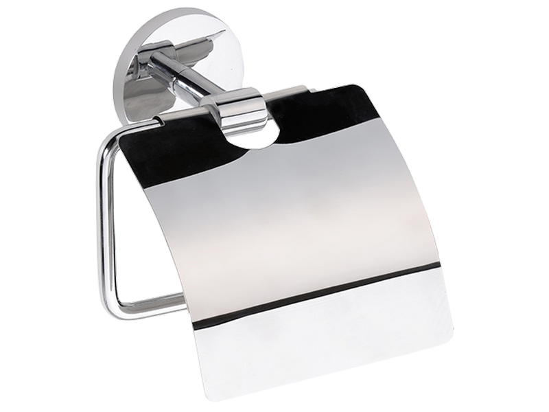 Single toilet roll holder with cover, chrome brass.