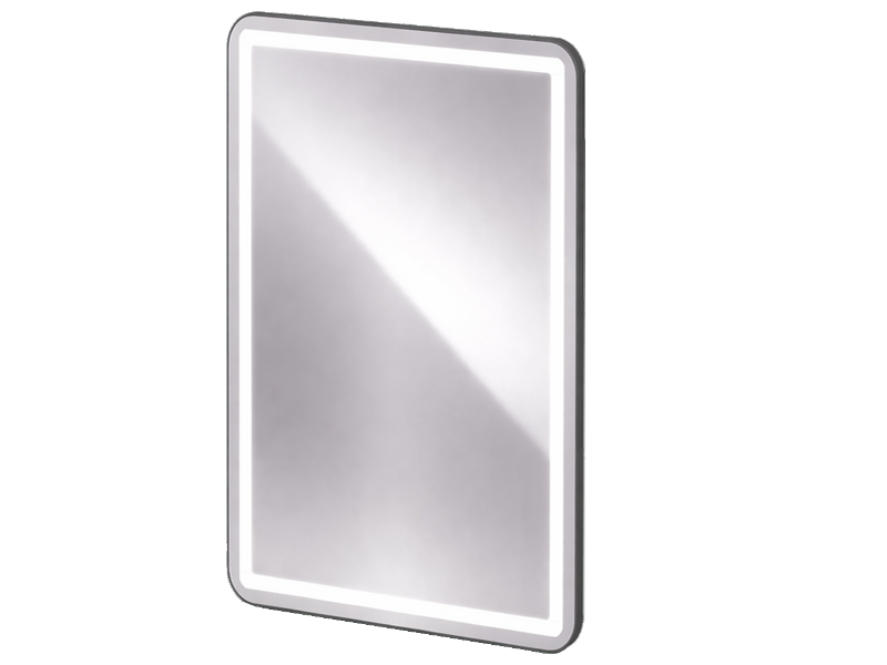 Smart Quadra LED lighted mirror H900 x W600 mm, setbacked rectangular frosted strip.