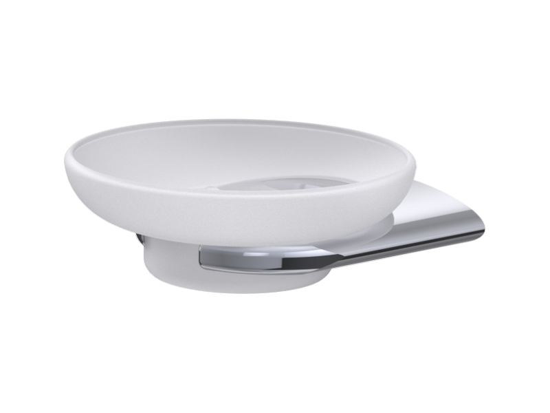 Soap dish holder, chrome brass wall support. Safety frosted glass soap dish.