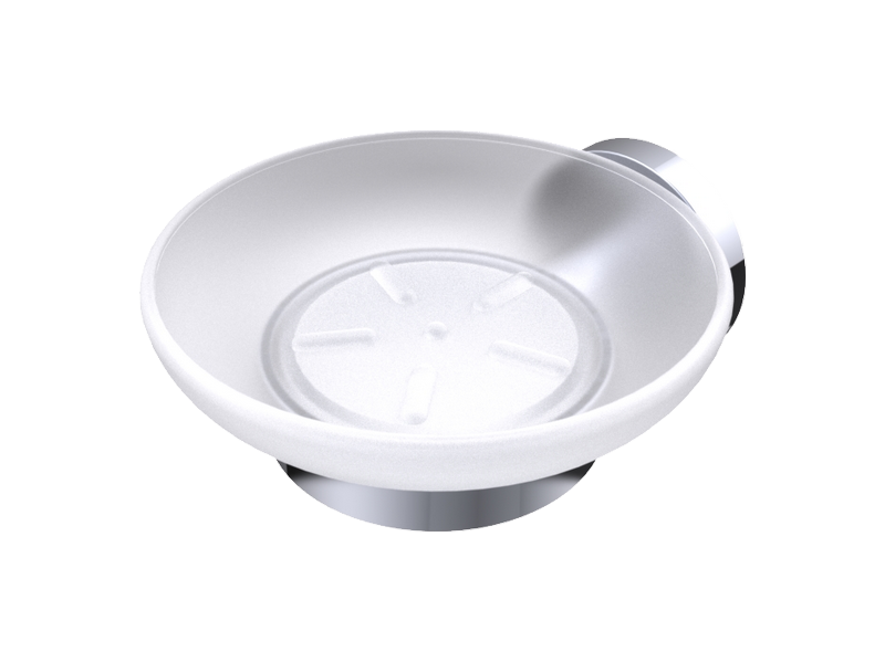 Soap dish holder, chrome brass wall support. Safety frosted glass dish.