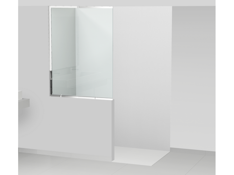 – 1 full-height fixed panel mounted on 3 profiles (wall, ceiling & shower tray), polished or polished bright aluminium 20 x 16 x 20 mm.