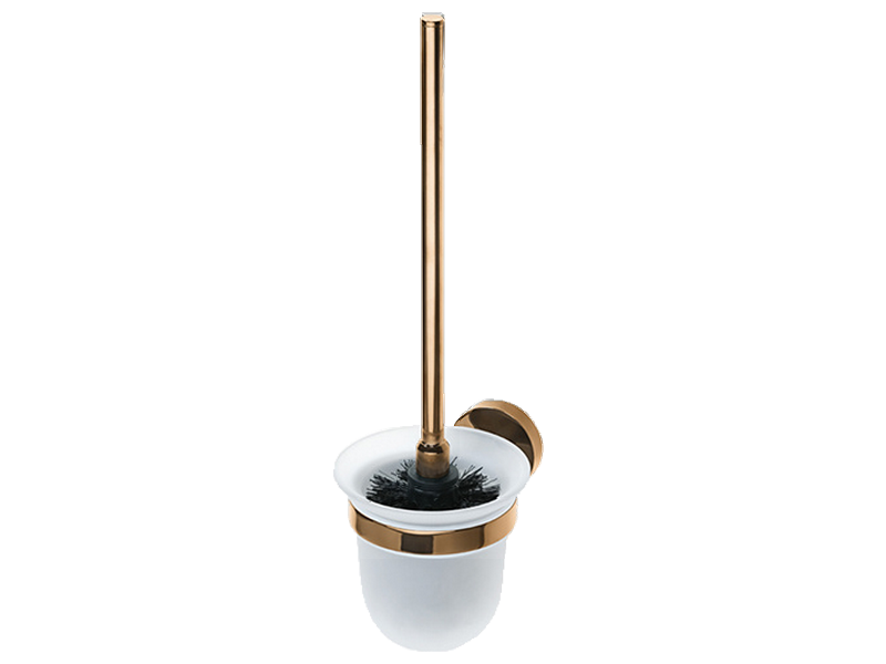 Wall toilet brush holder, brass, treatment PVD « copper ». Safety frosted glass dish.