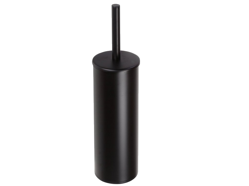 Wall toilet brush holder with cover, black epoxy coated brass. Black brush.