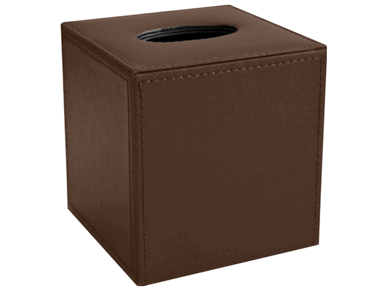Boîte kleenex cube à poser. Simili cuir marron avec surpiqûres.