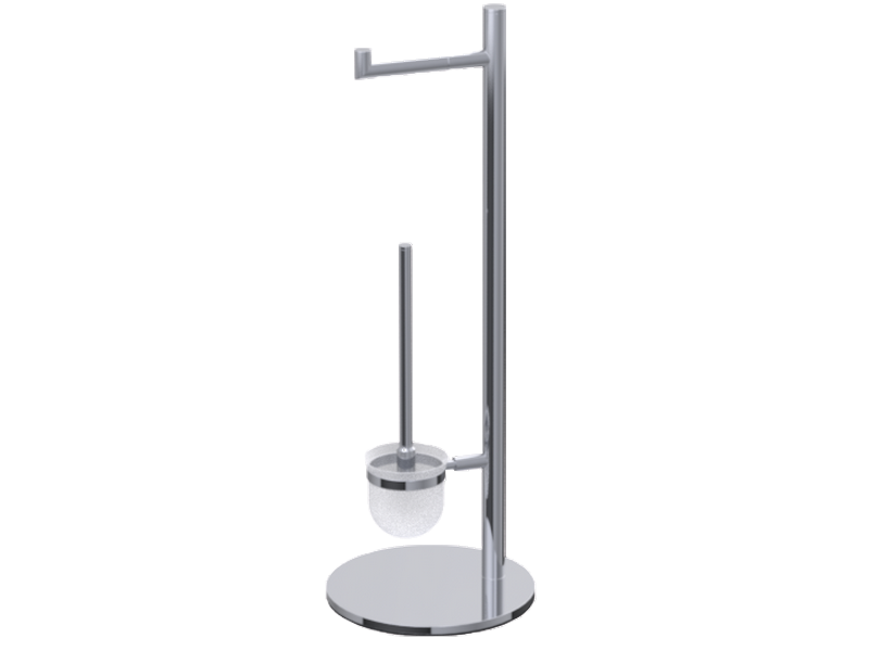 Distributeur papier rouleau simple + pot balai mobile en laiton chromé brillant.