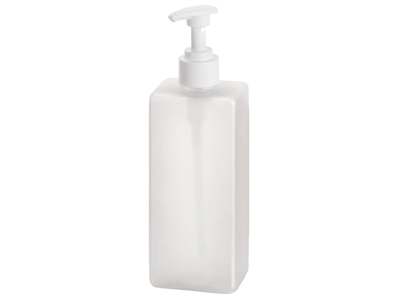 Flacon rechargeable pour gel douche, shampoing ou savon liquide Square avec pompe 500 ml pour support mural en plastique blanc.