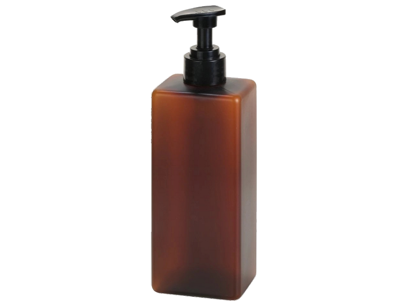 Flacon rechargeable pour gel douche, shampoing ou savon liquide Square avec pompe 500 ml pour support mural en plastique marron.