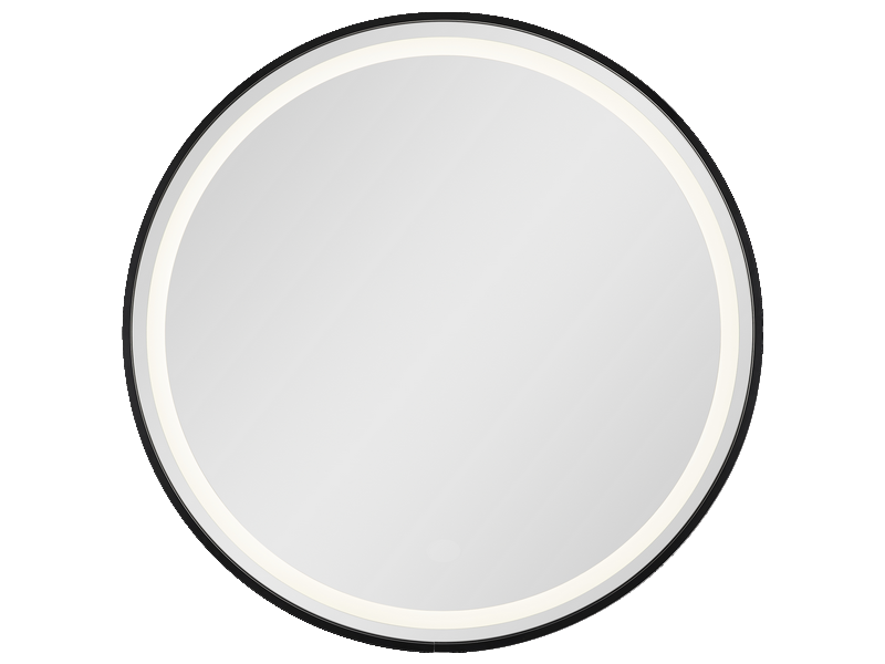Miroir Moon Trim LED Ø 700 mm, cadre aluminium finition noir brossé, bande dépolie 20 mm en retrait.
