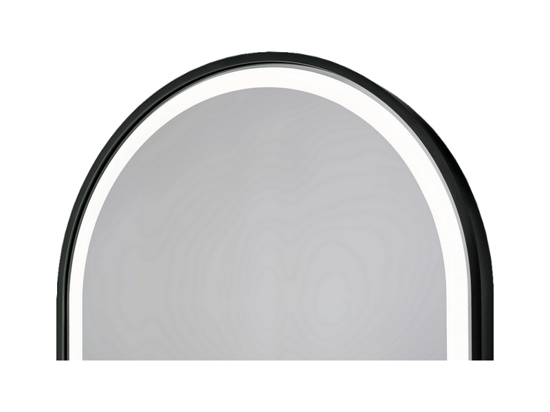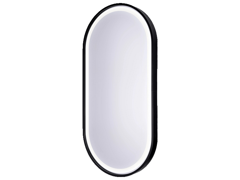 Miroir Oblong Trim LED 400 x 800 mm, cadre aluminium finition noir brossé, bande dépolie 20 mm en retrait.