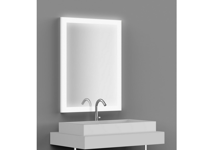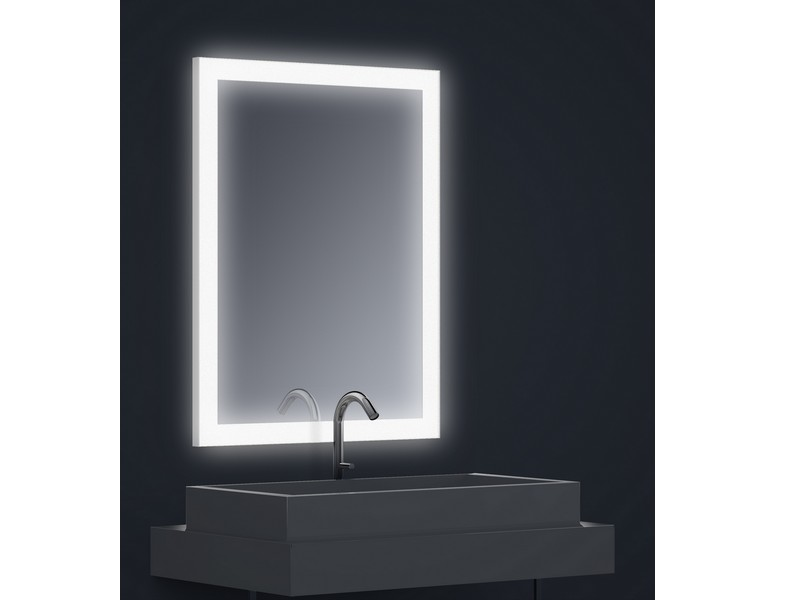Miroir rétro-éclairé LED L700 x H900 x P25 mm, bande dépolie rectangle en bordure.