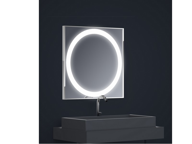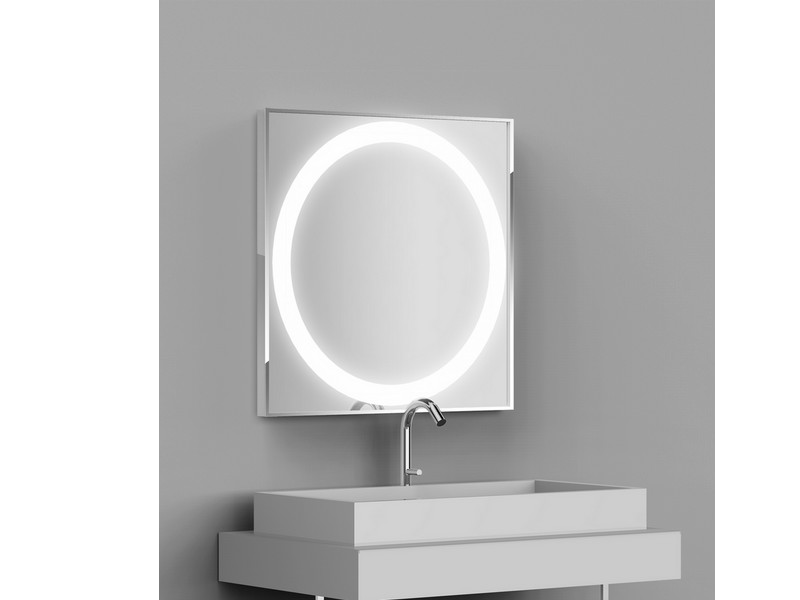 Miroir rétro éclairé Flex Led carré H70 x L70 x 2 cm dépoli rond en retrait et film anti-buée. Chant encadré aspect miroir poli. Isolation classe 2 volume 2 IP 44. Flex Led monochrome résiné 15 W/m NW 1120 lm/m IP 65. Dosseret métallique extra plat traité époxy cuit au four. Chants du miroir protégés. Durée de vie d’un Flex Led : 40 000 à 45 000 heures garanti 25 000 heures. Le Flex Led fonctionne en très basse tension de sécurité (TBTS). Température de couleurs : blanc neutre (4000°K) pour un meilleur indice de rendu (IRC). Puissance à déterminer selon la longueur du Flex Led. Livré monté prêt à la pose.