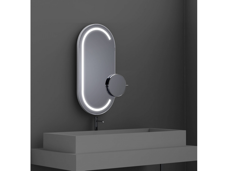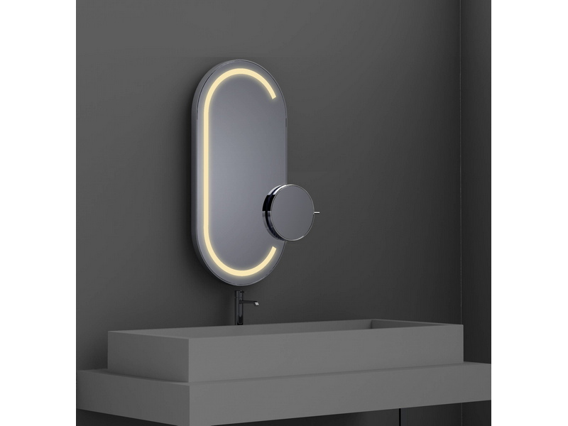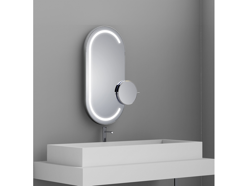 Miroir Satellis Oblong Duo Frontlight mixte LED, avec miroir grossissant non éclairant, L400 x H800 x P68 mm.