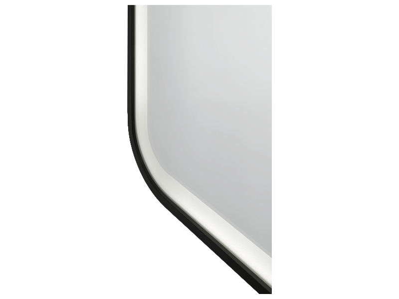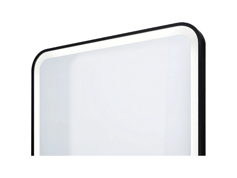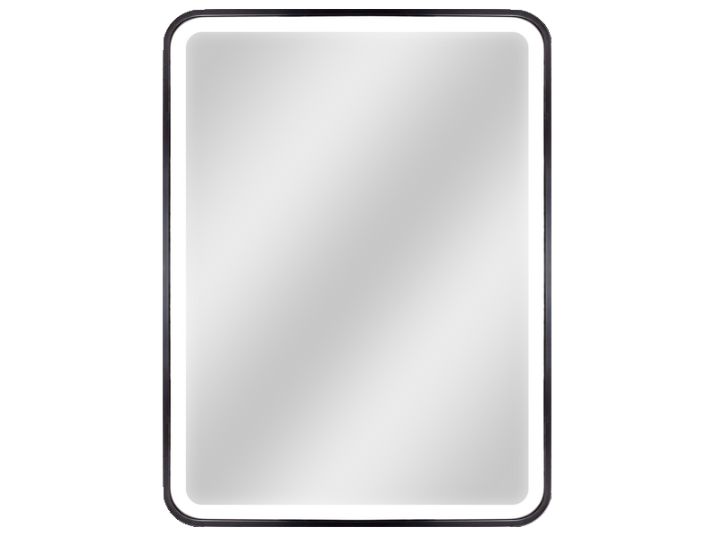 Miroir Smart Trim LED 600 x 800 mm, cadre aluminium finition noir brossé, bande dépolie 25 mm en bordure.