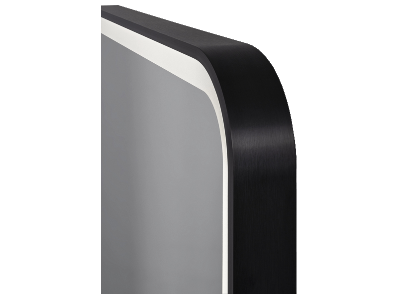 Miroir Smart Trim LED 600 x 800 mm, cadre aluminium finition noir brossé, bande dépolie 25 mm en bordure.