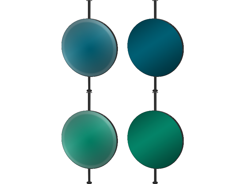 Dos personnalisable : identique à la serrurerie, miroir, verre coloré éclairé, verre coloré opaque, verre impression numérique, caisson laqué noir.