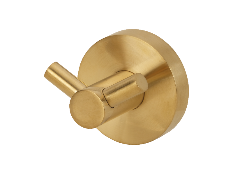 Patère crochet double small en laiton, traitement PVD « laiton brossé ». Tube Ø 18 mm.