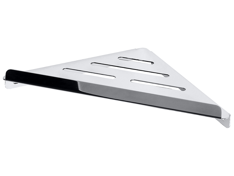 Porte-savon grillagé d’angle en inox 304 L poli brillant.