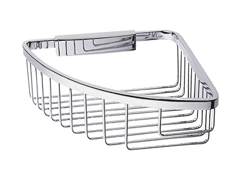 Porte-savon & flacon grillagé d’angle en laiton chromé brillant.