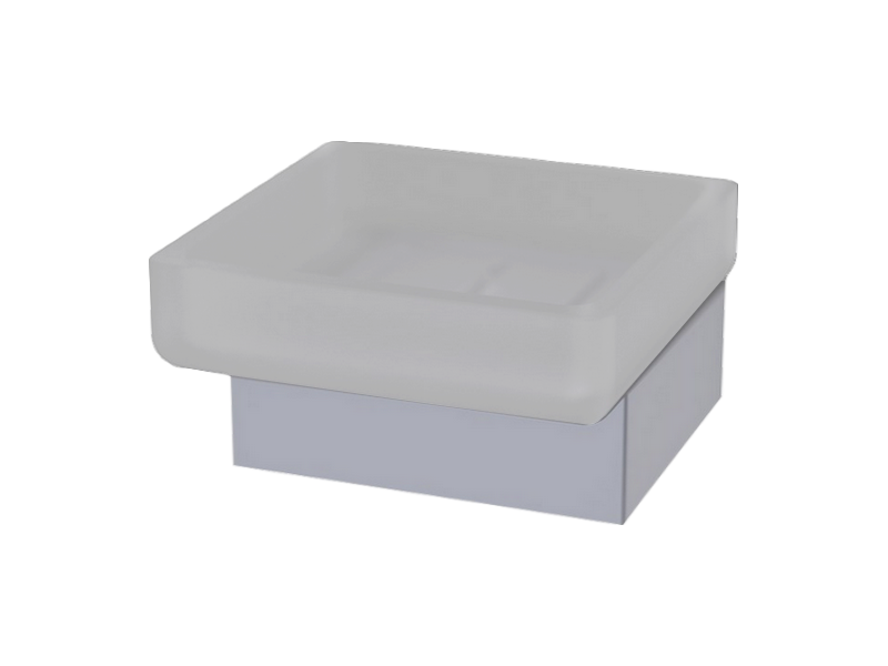 Porte-savon jatte verre dépoli. Support en laiton chromé brillant.