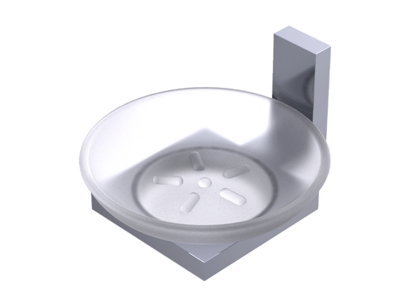 Porte-savon Round jatte verre dépoli. Support en laiton chromé brillant.
