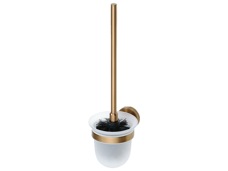 Pot-balai mural + balai + réceptacle. Support mural en laiton, traitement PVD « cuivre brossé ».