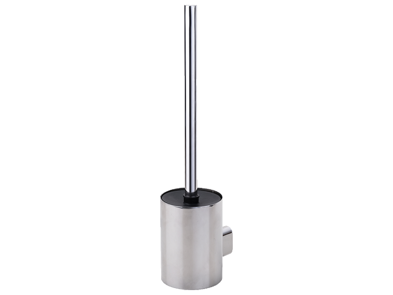 Pot balai mural inox poli brillant + brosse compacte noire.