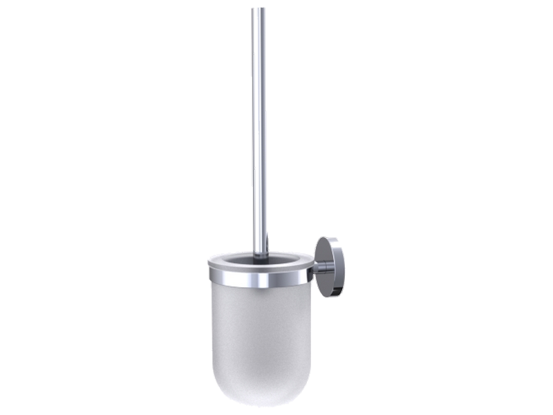 Pot-balai mural + balai +réceptacle. Support mural en laiton chromé brillant