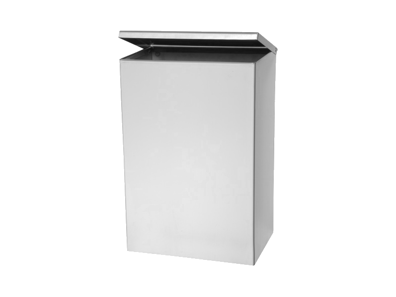 Réceptacle mural avec couvercle en inox brossé.