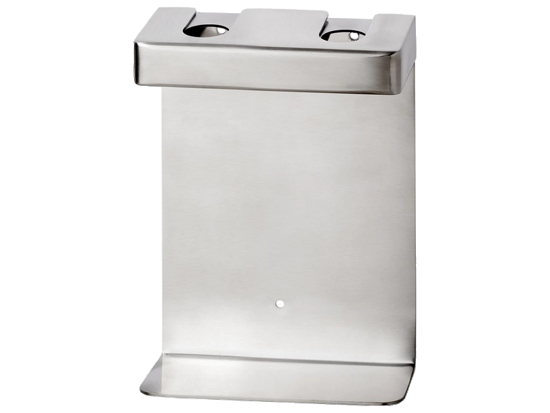 Support mural Square double pour flacons rechargeables en inox brossé.