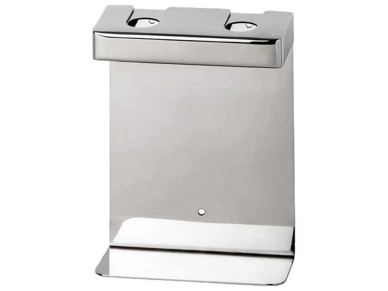 Support mural Square double pour flacons rechargeables en inox poli brillant.