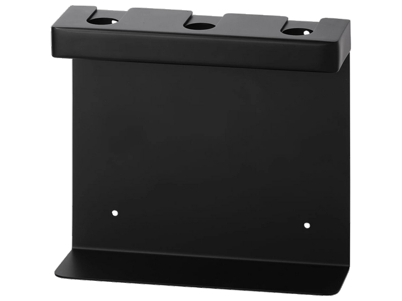 Support mural Square triple pour flacons rechargeables en inox noir mat.