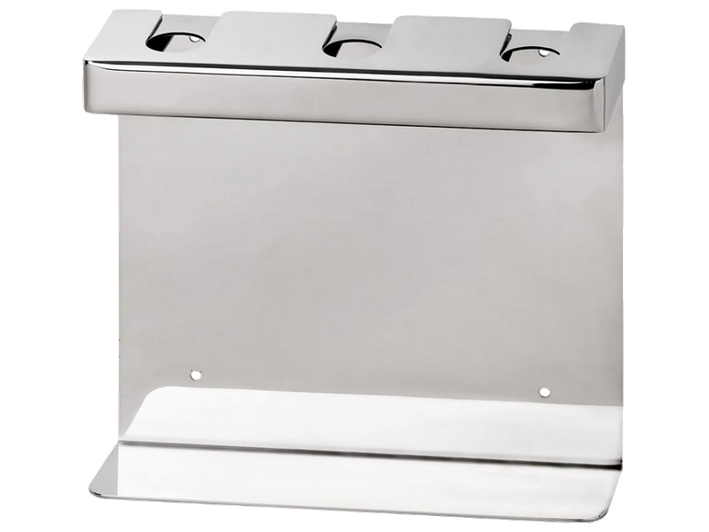 Support mural Square triple pour flacons rechargeables en inox poli brillant.