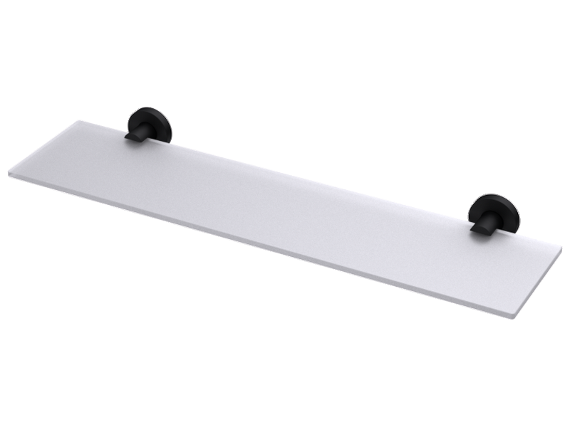 Tablette verre sécurit 500 mm + rosaces en laiton époxy noir.